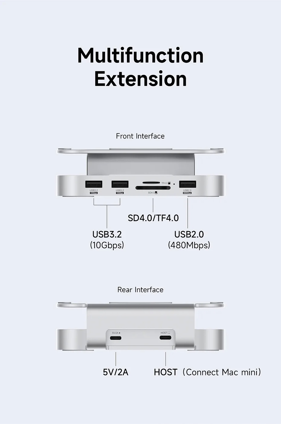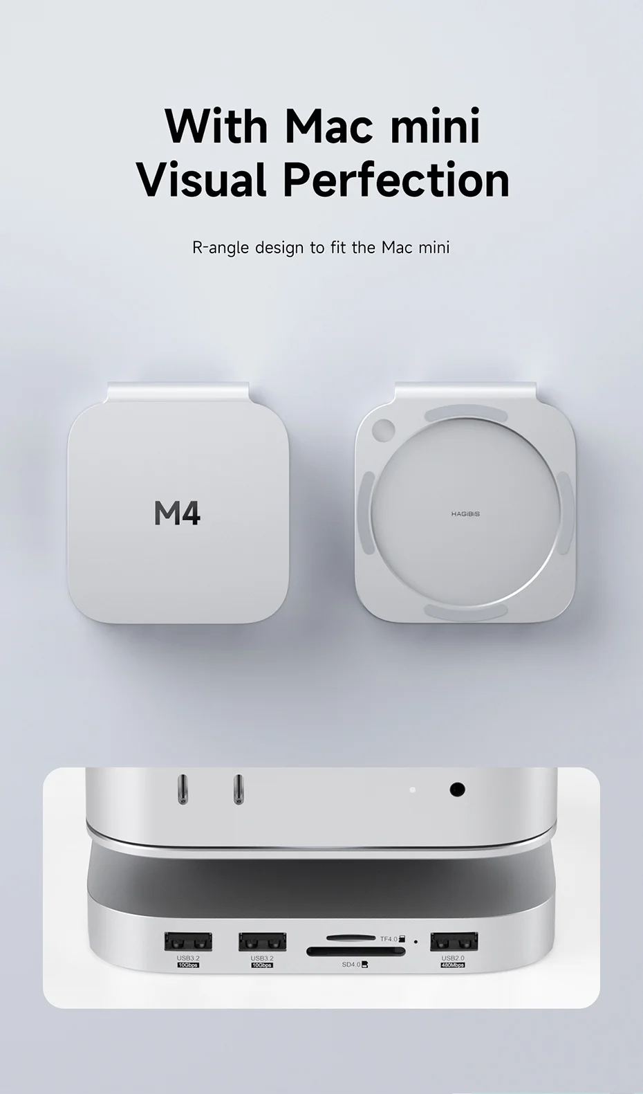 Good partner for Apple 2024 Mac Mini M4: Hagibis Hub has multiple interfaces to meet multiple needs. Same size, alloy material, plug and play, light, solid, fast heat dissipation, more suitable for your 2024 Mac Mini M4