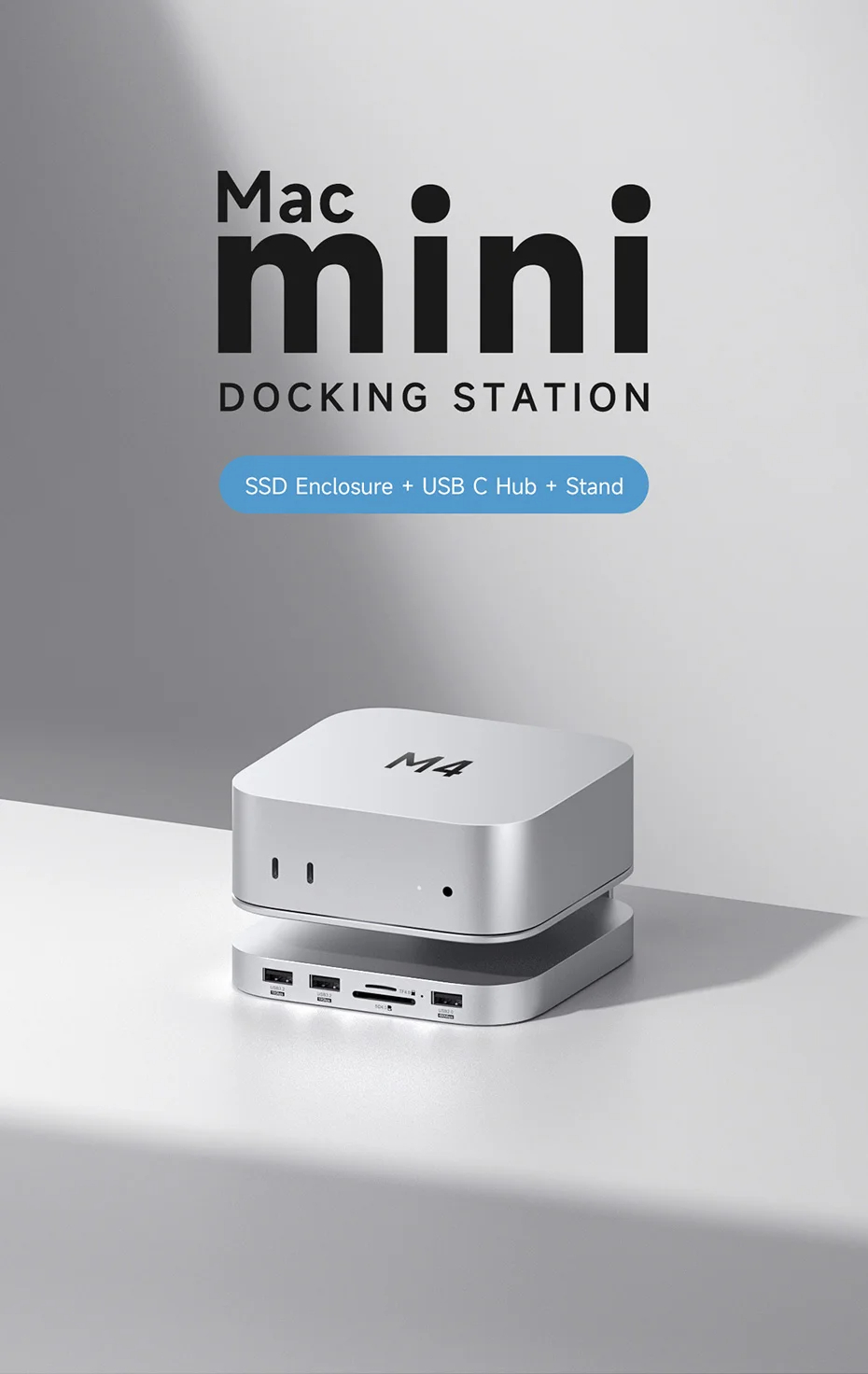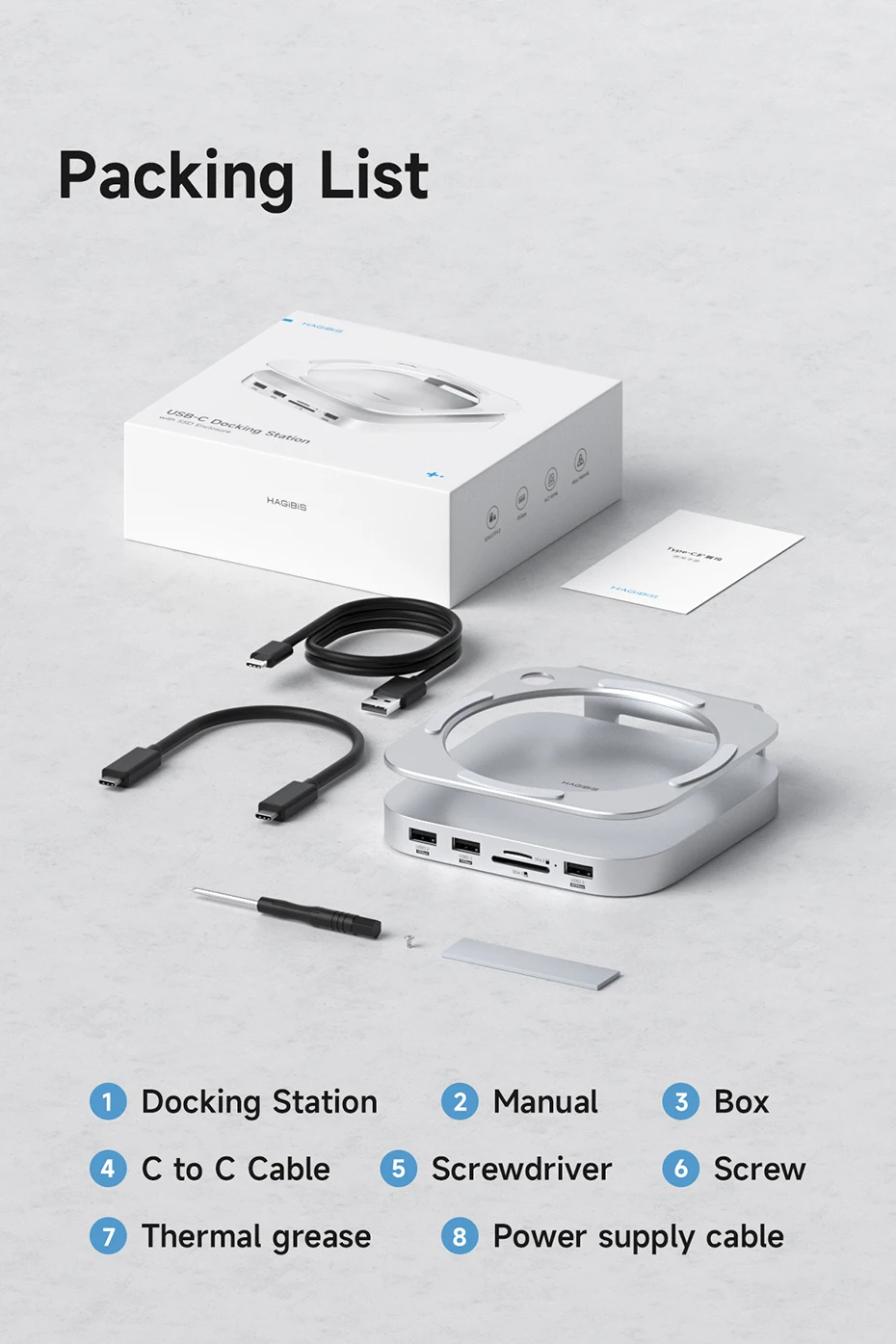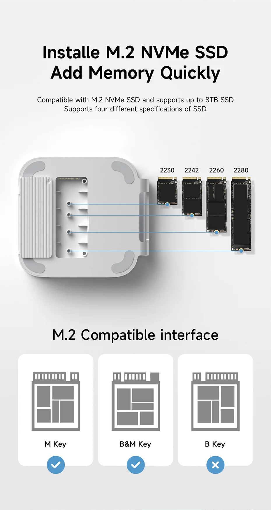 Add Storage Memory: Hagibis Mac Mini M4 SSD Case is compatible with 2230/2242/2260/2280 M.2 NVMe SSD and support up to 8TB SSD with speeds up to 10Gbps. *Note: SSD is not included