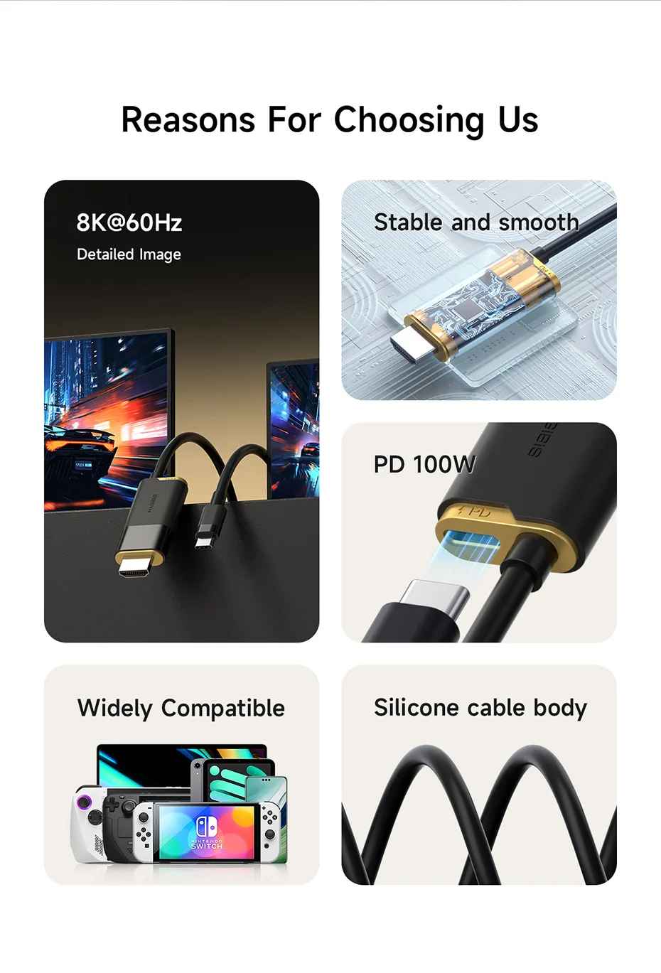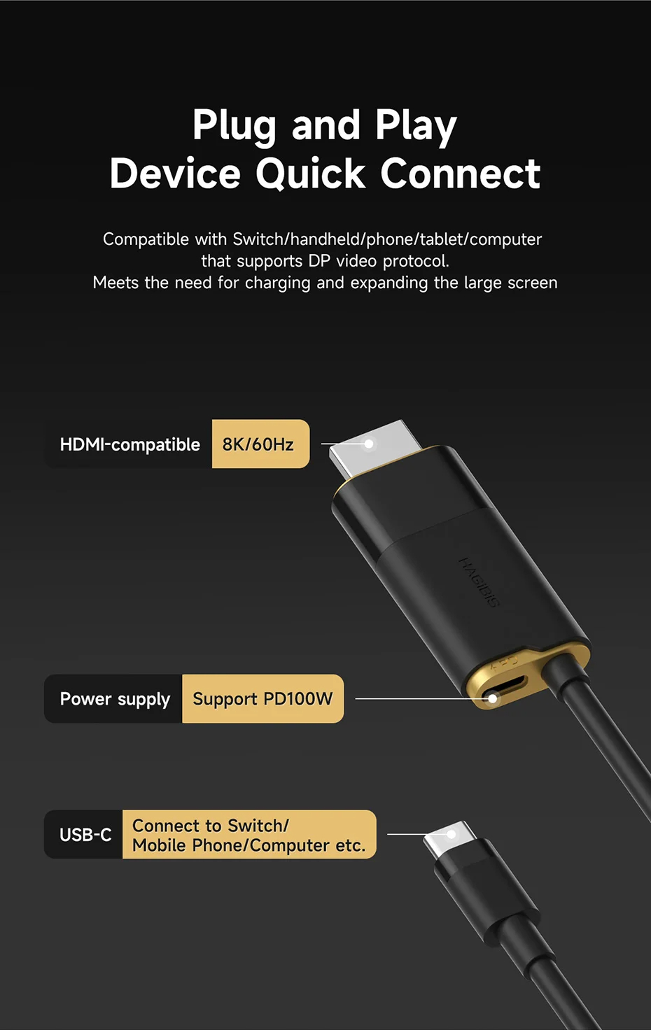 ความละเอียดสูง: Dock ของ Hagibis รองรับความละเอียดวิดีโอสูงสุดถึง 8K (7680×4320P/60Hz) และรองรับความเข้ากันได้แบบลดระดับที่ 4K@144Hz, 2K@165Hz, 1080P@240Hz อีกทั้งยังสามารถใช้งานร่วมกับ HDTV, มอนิเตอร์, โปรเจคเตอร์ และอุปกรณ์อื่นๆ ที่มีพอร์ต DisplayPort ได้โดยไม่ต้องติดตั้งไดรเวอร์เพิ่มเติม หมายเหตุ: เนื่องจากตัว Nintendo Switch รองรับความละเอียดสูงสุดเพียง 1080P ดังนั้นจึงสามารถแสดงผลได้สูงสุดที่ 1080P
